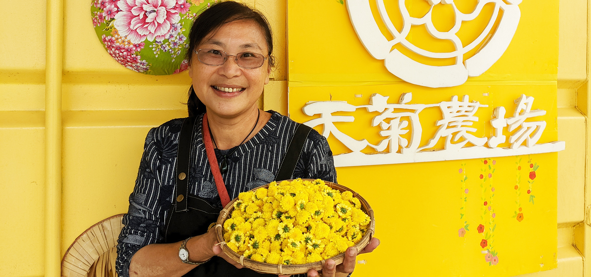謝玉妃前後搬遷了四次,才找到現在位於屏東高樹的場址,打造成結合生產、加工、食農體驗教育的基地,讓更多人知道本土菊花的優點,她用心經營的品牌也逐漸創出名號,開花結果。