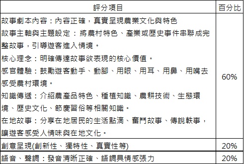 ◎比賽細則請參閱「農遊場域說故事比賽簡章」。