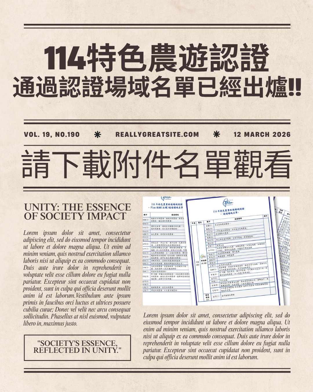 千呼萬喚始出來~!114年特色農業旅遊場域認證 - 通過認證場域名單在大家的期盼下,名單終於出爐了~!